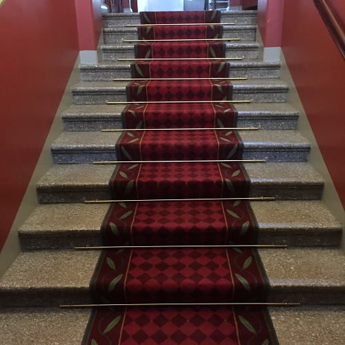 Messinkisen porrastangon rengaskiinnike kiristysruuvilla.