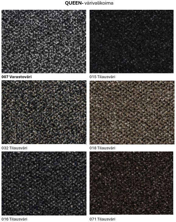 Tilausvärit: 015 musta/grafiitti, 071 ruskea, 016, 018 ja 032.