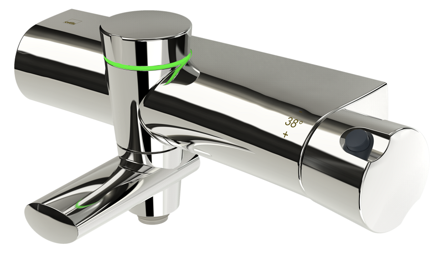 Termostaattinen amme- ja suihkuhana, joka reagoi tulovesien lämpötilan vaihteluihin nopeasti ja tarkasti sekä pitää valitun lämpötilan tasaisena. Lämmönsäätökahvassa on lämpötilan rajoitin, joka voidaan ohittaa nappia