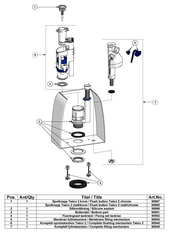 WC 9023 ja WC 9073 Sis.pohjaosa, tiiviste ja mutteri.