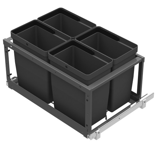 Käytännöllinen jätevaunu keittiön roskiskaappiin neljällä sangolla. Lyhyt ja erittäin tukeva malli, kiskot kantavat jopa 100 kg. Valmistettu Suomessa. Korkealaatuinen kaapista kevyesti ulos... Lue lisää