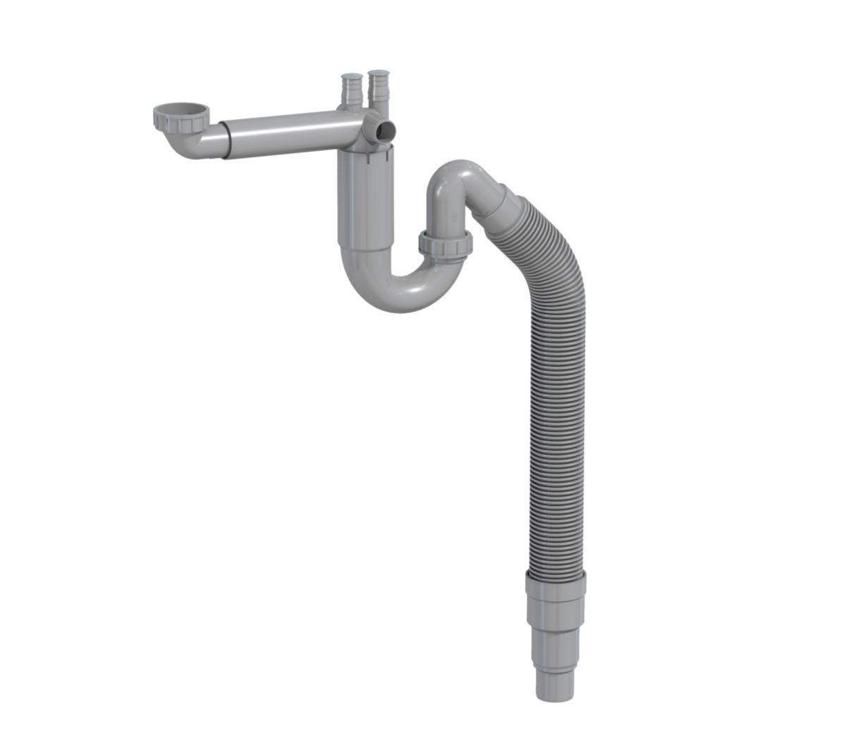 A-collection keittiövesilukko 1 1/2" mutterikiinnityksellä, ilman pohjaventtiiliä. Ei sisällä ylivuotosarjaa. Taipuisa 50 mm poistoputki.Yhteensopiva Prevex