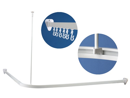 Suihkuverhokisko. Kiinnitys seinään/kattoon. Koko 90 x 170 cm.
