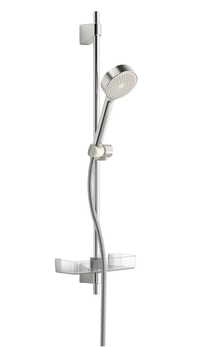 Oras Apollo -suihkusetti, joka sisältää käsisuihkun (ø95 mm), säädettävän suihkutangon (max. 720 mm), suihkuletkun (1750 mm) ja saippuatelineen.