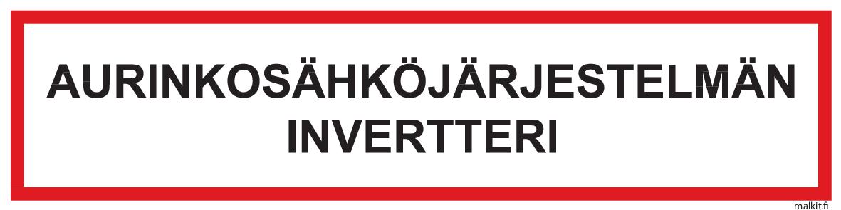 Paloalan opaste Aurinkosähköjärjestelmän invertteri. Valkoinen pohja, punainen reuna ja musta teksti.