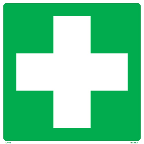Ensiapuopaste Risti. Vihreä pohja, valkoinen symboli. Jälkivalaisevassa kyltissä teksti ja kehys hohtavat pimeässä. Koot: 100 x 100 mm 150 x 150 mm 200 x 200 mm 250 x 250 mm 300 x 300 mm 350 x... Lue lisää