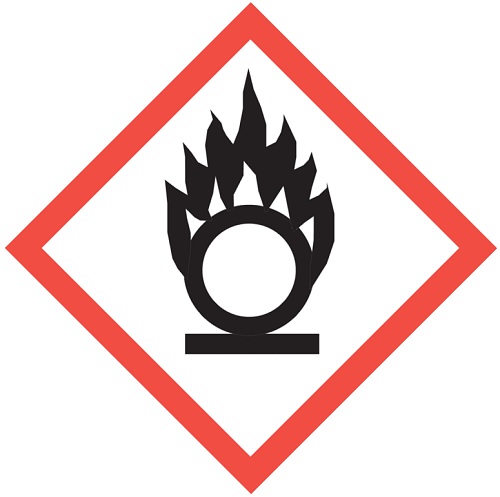 Varoitusmerkki GHS03 ilmaisee hapettavia aineita.