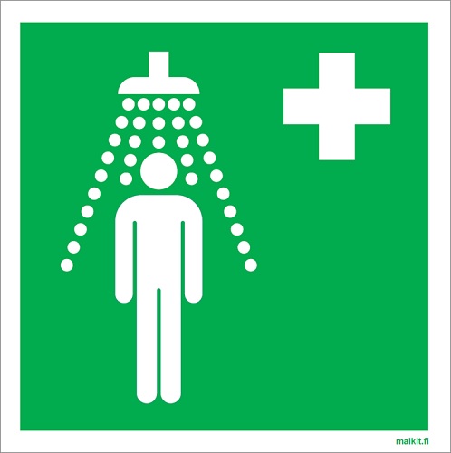 Ensiapuopaste Hätäasuihku. Vihreä pohja, valkoinen symboli. Jälkivalaisevassa kyltissä symboli ja kehys hohtavat pimeässä. Koot: 100 x 100 mm 150 x 150 mm 200 x 200 mm 250 x 250 mm 300 x 300 mm... Lue lisää