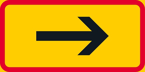 Liikennemerkin lisäkilpi H2.1a Kohde nuolen suunnassa. Keltainen pohja, musta symboli ja punainen reuna. Lisäkilvessä käytetään saman heijastavuusluokan kalvoa kuin sen päämerkissä.... Lue lisää