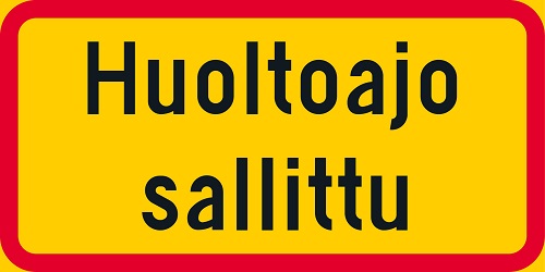 Huoltoajo sallittu - liikennemerkki kuuluu Tieliikennelain merkkiryhmään H Lisäkilvet.