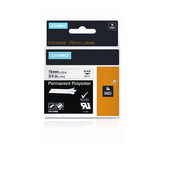 Merkintänauha Dymo Rhino 19 mm musta, valkoinen teksti vinyyli