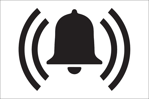 Kiinteistöopaste Ovikello. Valkoinen poyhja, musta symboli.