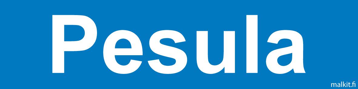 Pesula sininen pohja, valkoinen teksti