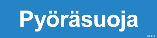 Kiinteistöopaste Pyöräsuoja. Sininen pohja, valkoinen teksti.