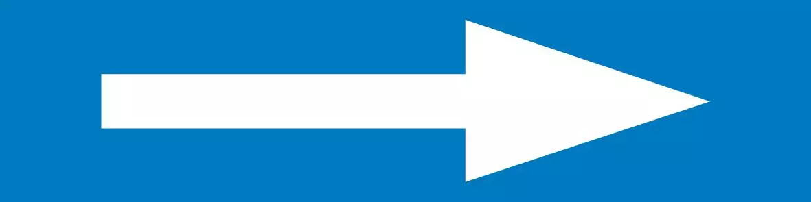 Punainen pohja, valkoinen nuoli. Ei kehystä.