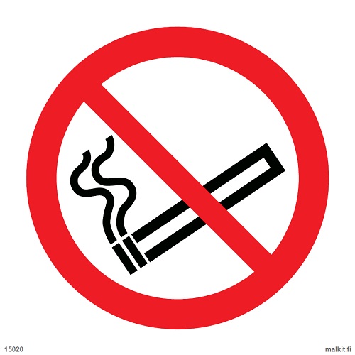 Kieltokilpi Tupakointi kielletty. Valkoinen pohja, puna-musta symboli. Koot: 100 x 100 mm 150 x 150 mm 200 x 200 mm 250 x 250 mm 300 x 300 mm 350 x 350 mm 400 x 400 mm 500 x 500 mm Materiaalit: Tarra... Lue lisää