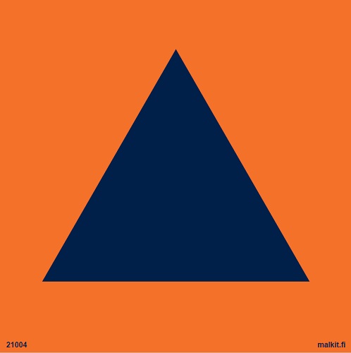 Väestönsuojan tunnus. Oranssi pohja ja sininen VSS kolmiotunnus. Koot: 100 x 100 mm Materiaalit: Tarra, muovi, alumiini