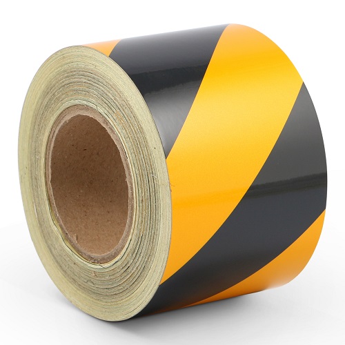 Varoitusteippi heijastava kelta-musta 100 mm / 45 m