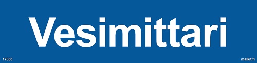 Kiinteistöopaste Vesimittari. Sininen pohja, valkoinen teksti. Koot: 75 x 30 mm 100 x 40 mm 150 x 45 mm 200 x 50 mm 300 x 80 mm 400 x 100 mm 500 x 120 mm 600 x 150 mm Materiaalit: Tarra, muovi... Lue lisää
