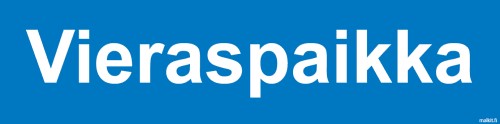 Kiinteistöopaste Vieraspaikka. Sininen pohja, valkoinen teksti.