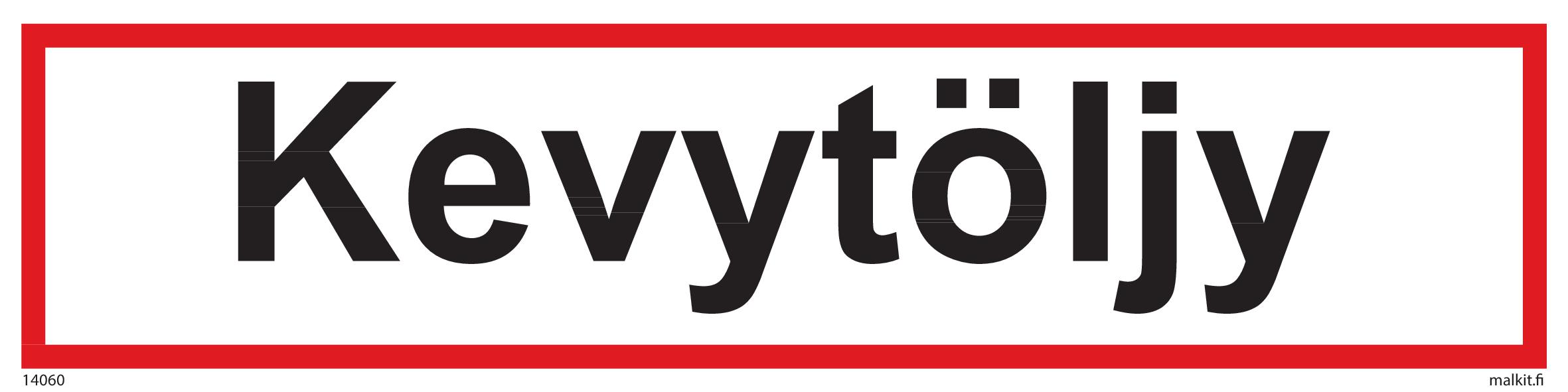 Paloalan opaste Kevytlöljy. Valkoinen pohja, musta teksti ja punainen reuna. Koot: 100 x 40 mm 200 x 50 mm 300 x 80 mm 400 x 100 mm 500 x 120 mm 600 x 150 mm Materiaalit: Tarra, muovi, alumiini... Lue lisää