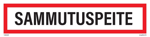 Paloalan opaste Sammutuspeite. Valkoinen pohja, musta teksti ja punainen kehys. Koot: 100 x 40 mm 200 x 50 mm 300 x 80 mm 400 x 100 mm 500 x 120 mm 600 x 150 mm Materiaalit : Tarra, muovi, alumiini... Lue lisää