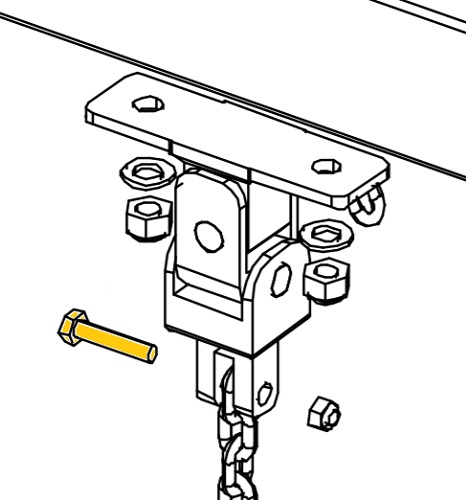 Erikoisruuvilla 904367 ja mutterilla 980160 kiinnitetään keinuistuimen ketjut laakeriin.