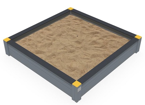 pihaan. Hiekkalaatikon reunat ovat leveät, jolloin niillä voidaan myös tasapainoilla ja aikuisilla on miellyttävä istua. Hiekkalaatikon nurkkauksissa on