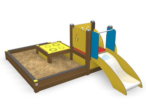 Rosa on hiekkalaatikko jossa on liukumäki, leikkipöytä ja lelulaatikko. Tornissa (570 mm) on rata-aktiviteettiseinä ja ruostumaton teräsliuku. Takana on