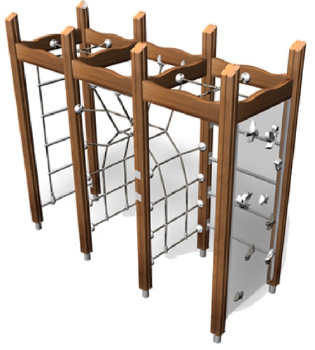 Lappset Flora-sarjan kiipeilyteline Q10965. Kiipeily kehittää lasten tasapainoa ja voimaa. Telineessä on monipuolisesti erilaisia kiipeilyelementtejä sekä