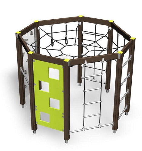 Erittäin monipuolinen kiipeilyteline jossa kompaktissa koossa useita erilaisia kiipeilymahdollisuuksia sekä renkaat, trapetsi ja rekkitanko jossa voi roikkua tai pyöriä. Erilaiset kiipeilyt kehittävät motoriikkaa monipuolisesta ja opettavat