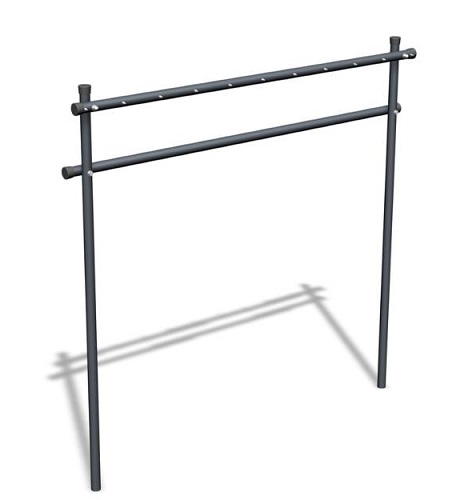Perinteinen kuivausteline piha-alueelle. Materiaali jauhepolttomaalattua teräsputkea, väri tummanharmaa RAL7024.