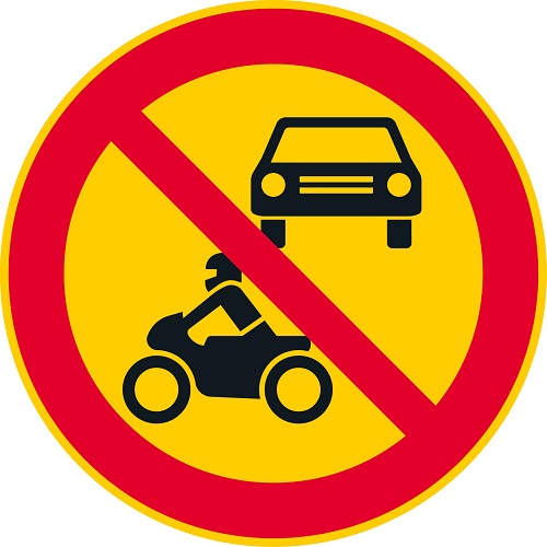 Liikennemerkki C2 Moottorikäyttöisellä ajoneuvolla ajo kielletty. Keltainen pohja, punainen reuna, musta symboli. Merkki voidaan sijoittaa myös yksinomaan tien tai sen osan sulkevaan laitteeseen.... Lue lisää