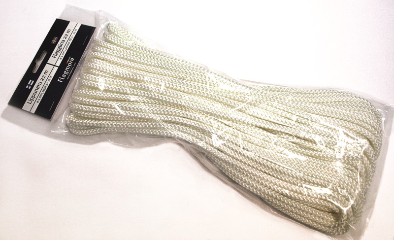 Kestävä, valkoinen lippunaru. Lippunarun pituus 22 metriä riittää 12 metrisiin tankoihin asti. Lippunarun paksuus on 5 mm.