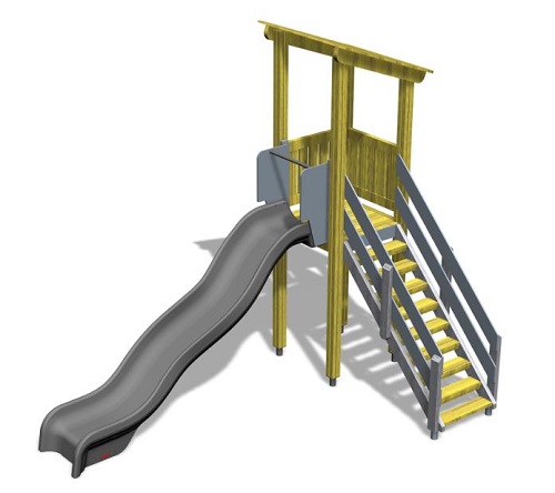 Liukumäessä on portaat 1470 mm korkealle katolliselle tasanteelle sekä mutkitteleva liukumäki. Kaiteet kestävää HPL-laminaattia. Liukuosa muovia.