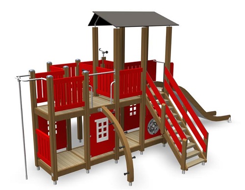 Monipuolinen Maalaistalo Teemaleikkiväline. Portaat johtavat 1470 mm korkealle tasolle, josta päästään laskeutumaan huimaa vauhtia pitkää liukumäkeä pitkin. Tasolla maisemia voi tarkkailla... Lue lisää