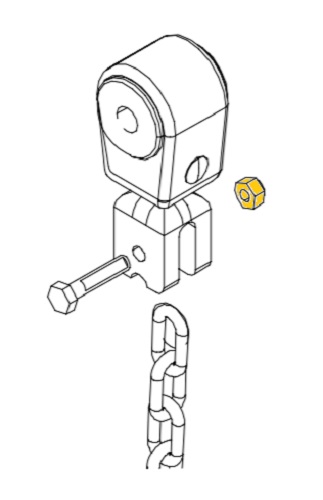 Pultilla 903772 ja mutterilla 980160 kiinnitetään keinuistuimen ketjut seuraaviin keinulaakereihin: 902509, 902508 ja 901958SP (linninpesäkeinu).