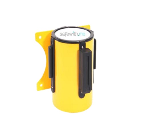 Seinään kiinnitettävä nauhakasetti tilanrajaukseen. Ensisijaiseti sisäkäyttöön. Nauhakelaa on helppo avata väliaikaista kulkua varten.