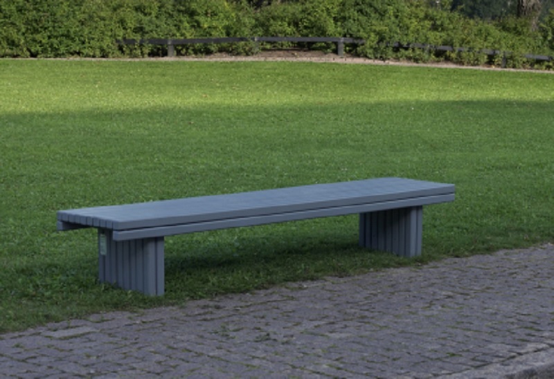 ja käytävillä penkki jätetään vapaasti seisovaksi mutta puistoympäristössä syväperustusankkurointi varmistaa paikalla pysymisen. Materiaali on