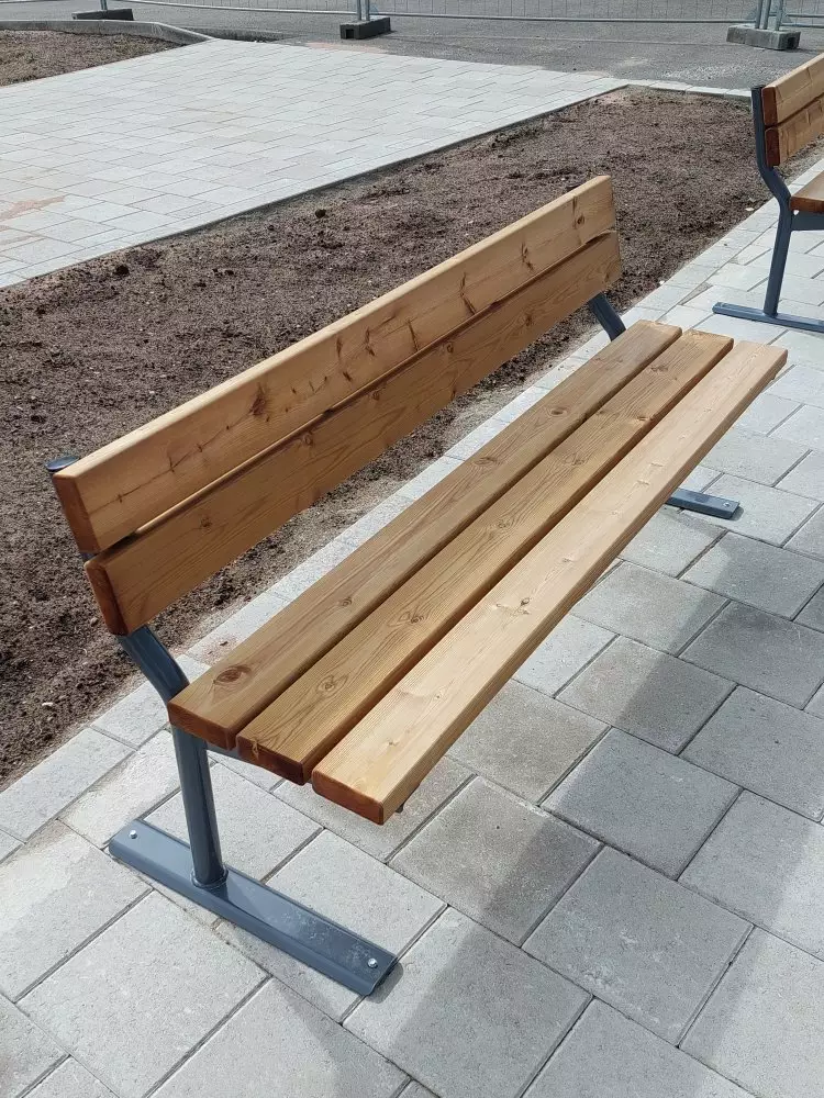 Yksinkertaisen tyylikäs penkki ulkotiloihin. Vapaasti seisova penkki, joka voidaan kiinnittää alustaan pulttaamalla.