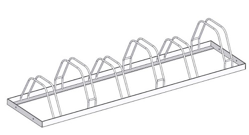 Perinteinen kestosuosikki, vapaasti seisova 6-paikkainen pyöräteline, joka voidaan kiinnittää kovaan alustaan pulttaamalla tai syväperustusankkurin