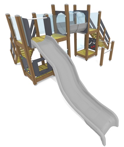Monipuolinen tornileikki. 1,47 m korkeaan torniin kiivetään portaita pitkin ja alas lasketaan mutkittelevaa liukumäkeä pitkin.