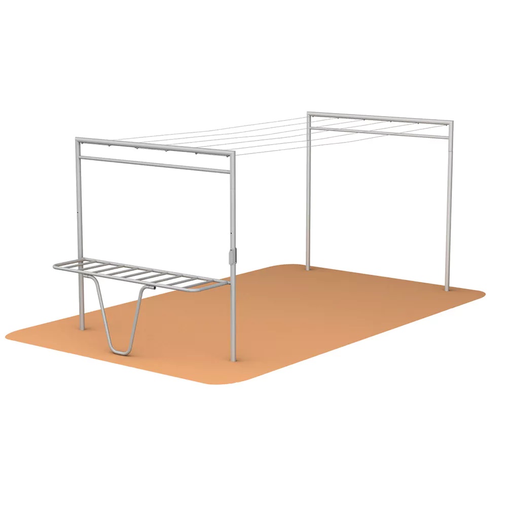 Tuuletus- ja pyykinkuivausteline pienille taloyhtiöille. Tamppauslavan koko 1,8 x 0,5 m. Lava käännettävissä pystyyn.Toimitus osina. Sisältää