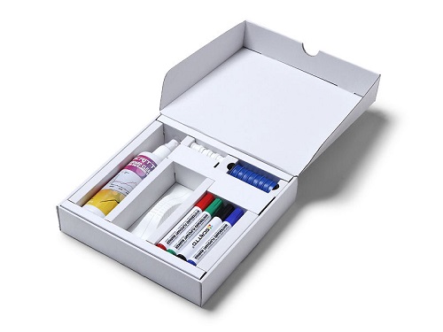 Tarvikesarja tussitauluille. Kaikki tarvittava valkotaulun käyttämiseen ja puhdistamiseen samassa paketissa.