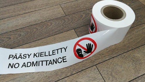 Vahva sulkunauha Pääsy kielletty - no admittance -tekstillä Huomionauha, valkoinen pohja. Nauhassa teksti PÄÄSY KIELLETTY - NO ADMITTANCE sekä pääsy kielletty -kuva (kieltoympyrä ja pääsyä... Lue lisää