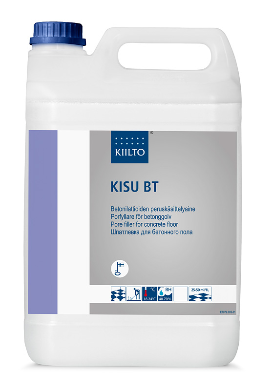 Kiilto Kisu BT täyttää pinnan huokoset eikä muodosta pintaan näkyvää kalvoa. Kiilto Kisu BT estää lian imeytymisen itse materiaaliin. Käsittelyä ei voida