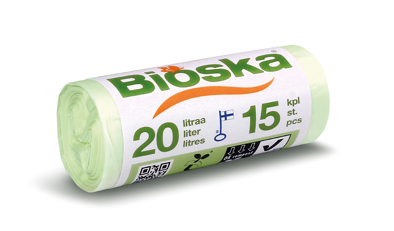 Bioska 20 L 100% biohajoava roskapussi. Bioska –jätepussi on kätevä ja helppokäyttöinen ratkaisu kotitalouden biojätehuoltoon. Bioska kestää ja pitää kosteuden sisällään. Puhdas... Lue lisää