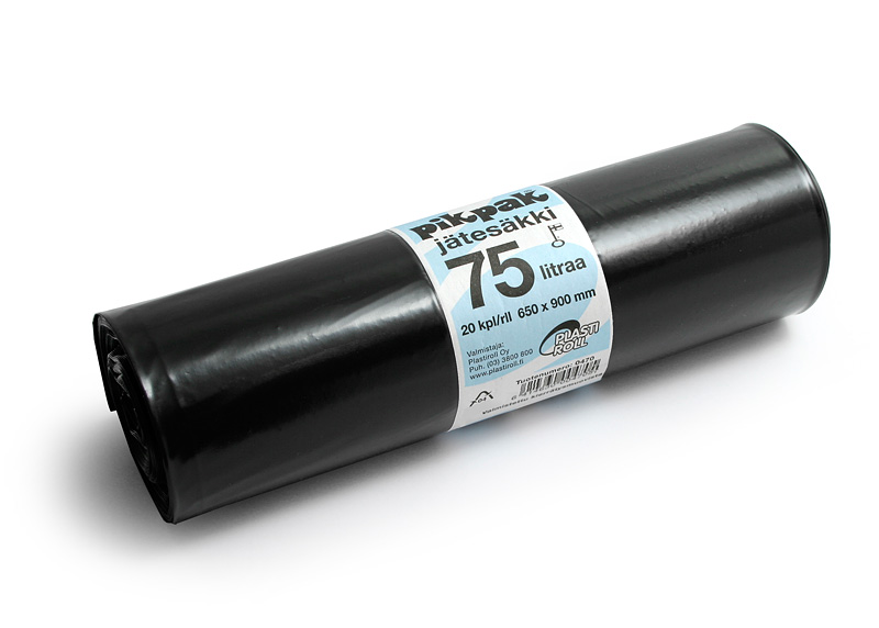 Jätesäkki 75 L musta Plastiroll 0470 20 kpl/rll, 10 rll/ltk