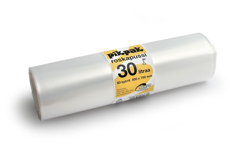 Kirkas 30 litran roskapussi. Koko: 500 x 700 x 0,02 mm Pakkauskoot: 50 kpl / rll 20 rll / ltk, 640 rll / lava (32 ltk)