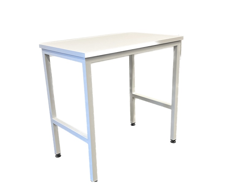 Apupöytä säätöjaloilla metallijalat, valkoinen laminattitaso, mittojen mukaan
